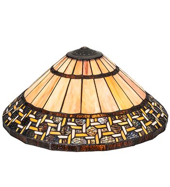 Named for the Greek word for light; Ilona will stir conversations among family and friends with a dramatic Honey and Beige colored knotwork design on Wispy Blue/Green art glass. The background includes Beige; Mauve; and Purple while Root Beer-colored glass borders enhance the beauty of this exquisite glass shade; created using the famous Meyda Tiffany copperfoil construction technique. Pair with a base to create a table or floor lamp or build a wall or ceiling fixture with appropriate hardware. The Ilona Shade is included in our American-designed; handcrafted Stained Glass Lighting Collection. Each shade is a unique work of art with color variations based on natural ingredients inherent in the glass.