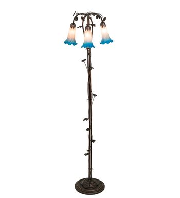 Inspired by the popular Tiffany design from the early 1900s... This floor lamp offers an attractive; delicate design featuring three stunning shades that are created using mouth blown Favrile style Pink and Blue art glass. The Pond Lily shades are embraced by an elegant cast metal floor base with floral and vine accents that are finished by hand in Mahogany Bronze. The Pond Lily Floor Lamp is featured in our American designed; handcrafted Favrile Glass Lighting Collection. UL and cUL listed for dry locations. Each shade is a unique work of art with color variations based on natural ingredients inherent in the glass. Contact us if color matching is critical when ordering multiple items.