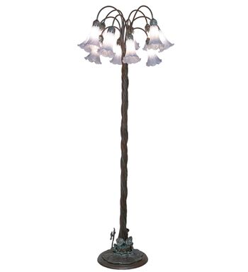 This floor lamp offers an attractive; delicate design featuring 12 stunning shades created with Gray Favrile-style mouth-blown art glass. The Pond Lily shades are embraced by an elegant Cast Bronze Base with floral and vine accents featuring a rich Mahogany patina. The Pond Lily Floor Lamp is included in our American-designed; handcrafted Favrile Glass Lighting Collection. UL and cUL listed for dry locations. Each shade is a unique work of art with color variations based on natural ingredients inherent in the glass. Contact us if color matching is critical when ordering multiple items.