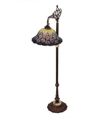 61"H Tiffany Peacock Feather Bridge Arm Floor Lamp