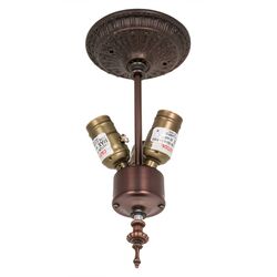 Each base and piece of hardware is individually crafted and chosen for every lamp and lighting fixture. The selection of lamp bases ranges from Victorian ladies and Cherubs to Pine Trees and Elk Antlers, while ceiling fixture hardware varies from Stars and Mission styles to metallic Deer and Bear silhouettes, as well as Pond Lilies and Trout.